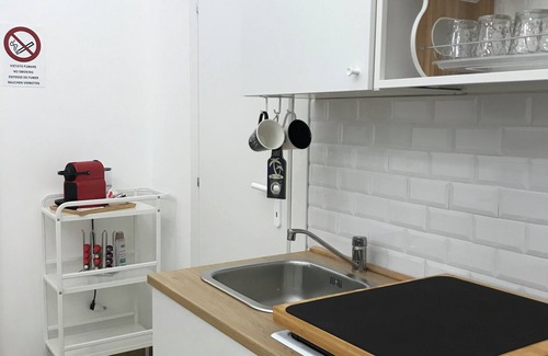A living room and air conditioning are featured at this 1-bedroom, 1-bathroom rental. Connect to the WiFi, or get cozy in front of the Smart TV. Bathroom amenities include a hair dryer, a bidet, and towels. Prepare a home-cooked meal in the kitchenette, complete with a stovetop and a refrigerator, as well as a microwave, cookware, and a blender. Other amenities include bed sheets, an ironing board, heating, and a dining table.