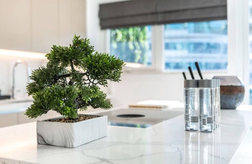 It is fully equipped with stainless-steel cooking appliances that make it suitable for preparing any meal, whether a simple breakfast, quick snack or a three-course gourmet dinner. Spacious quartz countertops and a central kitchen island provide plenty of room to work your MasterChef magic.