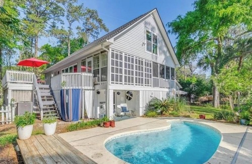 Family friendly cottage w/ POOL! <20min drive to downtown or beach! Pet friendly is located in Savannah. Family friendly cottage w/ POOL! <20min drive to downtown or beach! Pet friendly provides accommodation, featuring Laundry, Balcony/Terrace, Child Friendly, among other amenities. This Cottage features Laundry, Balcony/Terrace, Child Friendly, to make your stay a comfortable one.