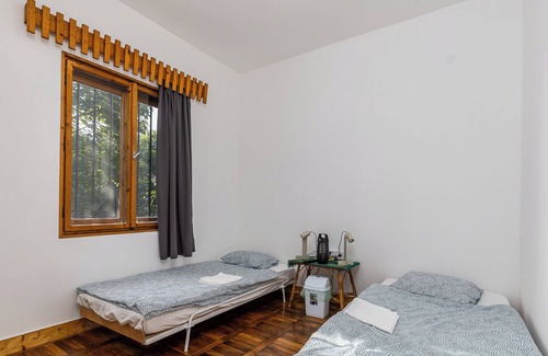 On the first floor, 6 single beds are available in 3 separate bedrooms. The floor is also equipped with a shared bathroom with a toilet and shower.