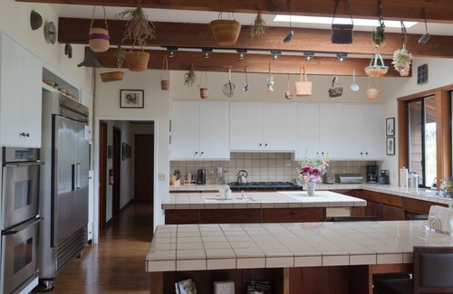 Quail Gate is a wonderful place to relax and spend time with friends and loved ones. Nestled on the edge of a forest, our single story home has large windows, modern furniture, and decor inspired by farming, fungi and Northern California flora and fauna. It features an exceptional kitchen, 4-6 person hot tub, and sweeping views of the farm's orchard; pasture, and pond. Here you will find beautiful landscaping, play swings for children, walking paths, and more.