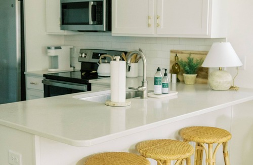 Enjoy the salt air on the front porch rocking chairs and watch the sunset or sip your morning coffee on the back patio. We also have loads of extras in the garage for you to use during your stay including beach chairs, bikes, beach wagon, kids water table, pickleball paddles and much more! Below is a list of additional details that the home & neighborhood includes!