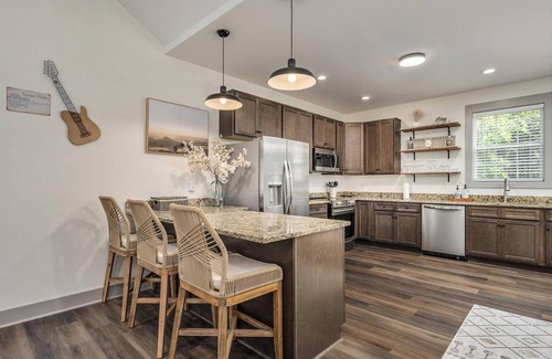 This pristine home features three trendy bedrooms, offering calming decor and comfortable beds. Rest and unplug after an adventurous day exploring the rich landscapes of Tim’s Ford Lake.