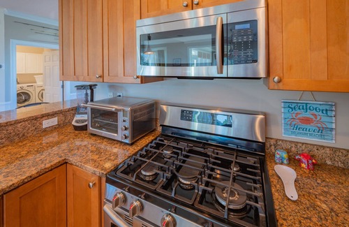 The kitchen is very well equipped with plenty of plates, glasses, serving plates, cooking pots, etc. The kitchen has newer stainless steel appliances (gas cooking) and granite countertops. We provide the pillows and comforters but sheets/towels/etc. are the responsibility of the guest to either bring or rent.