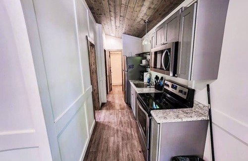 Cozy and quiet, this tiny house cabin will prove to be your new favorite getaway! It's Time to unplug and recharge! This cabin proves to be the perfect outdoor retreat you are looking for with all the amenities you need. Our modern tiny house cabins are the perfect place to relax, though adventure can be found just around the corner. Our 670+ acre property sits right on Lake Guntersville. Guests can access the waterfront by use of our private roads. The cabins are tucked into the woods, not directly situated on the water. Boat parking with battery hook-ups are available. All cabins have full size kitchens, stocked with basic cookware. We ask that you wash and replace any items used during your stay. The cabins are supplied with bedding and bath linens to accommodate four. If you would prefer not to reuse bath linens, you can pack your own or request more at an additional fee. All rates include 4 guests and 2 vehicles.