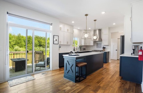 The perfect vacation awaits at Stay + Play, a spacious home nestled between Holland and Saugatuck. This Michigan sanctuary offers luxurious bedrooms, a modern kitchen, a workspace, and three acres of land to enjoy. This high-end home is the perfect place for bike lovers, a large family or group wanting easy access to multiple attractions.