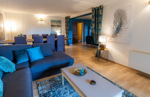 And for families, take advantage of a kitchen (open with a view of the terrace and the living room), fully equipped with household appliances (mini-pancake machine, waffle maker, mixer, fruit press, coffee maker and Senseo, raclette, fondues). ...), a spacious laundry room (washing machine + dryer), 2 lounges and a pétanque track!