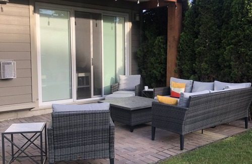 Welcome to our newly decorated 2000 sqft condo on beautiful Wood Lake, in Lake Country, BC. Our family friendly condo boasts all NEW modern furnishings, including a large kitchen with granite counter tops, a Sub Zero fridge and Wolfe gas range, 3 large bedrooms, sleeping 10 total people, 2.5 bathrooms, a double garage, a sunny patio, a natural gas BBQ, a fireplace, central air conditioning and more. Our complex is centrally located in the Okanagan with Beasley Park to the west with a soccer field, small beach and playground. To the east of our complex are tennis courts and a fantastic running/walking/biking trail that goes around Wood Lake. Our condo has all the amenities of home, as well as a boat slip. Our unit is the last unit, closest to the lake, behind the lake front condos. It is a short walk to the beach. There are many attractions to enjoy within Lake Country, the Kangaroo Farm, Oyama Zipline, Silverstar Mountain Resort , numerous wineries and much more.