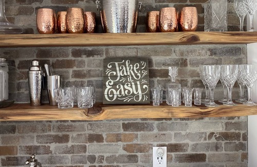 The kitchen is a dream with a open concept living space, fireplace and mini wet bar. It has a chiefs stove/oven, coffee station and large counter space for food prep and entertaining . Walk out from the kitchen/living area to the backyard for some outdoor eating or to enjoy the beautiful hillside mountain view.