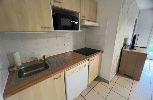 Treat yourself to a relaxing stay in the heart of a 3-star tourist residence, ideal for a family vacation on the Landes coast! This 39 m² two-bedroom apartment, located on the ground floor, can accommodate up to 6 people and benefits from a friendly setting with many activities available. The apartment has 2 comfortable bedrooms: One bedroom with a double bed (140 cm), one bedroom with two single beds (90 cm). A sofa bed (140 cm) in the living room for additional sleeping accommodations. A fully equipped kitchen with a dishwasher, refrigerator, freezer, microwave, and filter coffee maker. A bathroom with a bathtub. A 13 m² terrace, perfect for outdoor dining and relaxing moments. Private parking space in addition to visitor spaces. Shared swimming pool with paddling pool for the little ones (open from April to September depending on the weather), pétanque court, children's playground, table tennis and tennis court and a green and peaceful environment, perfect for a relaxing stay. A prime location: just minutes from the beaches of Ondres and the Basque Country, close to the region's shops and activities. End-of-stay cleaning is included in the rental price. The washing machine and dryer are shared. No Wi-Fi access. To be paid before your arrival: tourist tax and accommodation deposit by credit card only. Optional services to be arranged before arrival: