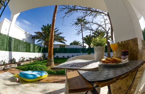 Beautiful recently reformed villa with independent garden and communal pool. You can relax on your private terrace. In the center of Playa del Inglés, 9 min. walking from the beach with the same name and the iconic Dunes of Maspalomas, near bars, restaurants and pubs. Ideal for families and friends, located a short distance from the Yumbo Shopping Center epicenter of the LGTBI party and with a varied commercial offer.