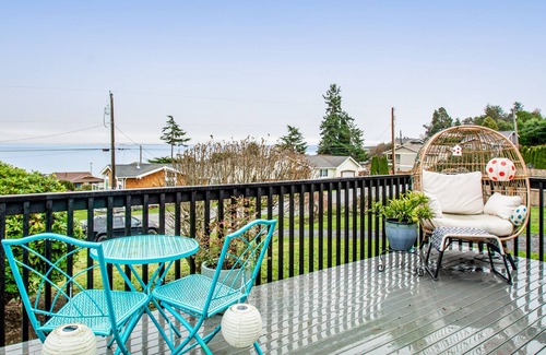 Stop looking for the perfect romantic getaway. You have found it! Boasting phenomenal views of Port Susan from the living room's large window, you can plop down on the sofa each morning with a fresh cup of coffee and plan a full day of island fun, or If you want to breathe in some salty air, the adorable front deck has a comfy wicker chair, a table, and plenty of room for you to enjoy the space, and watch the tremendous Pacific Northwest sunrise. The entire interior has been updated with the cutest decor and modern furnishings to make you feel right at home in no time. Plus, when you and your partner work up an appetite, the full kitchen boasts an open layout, plenty of prep space, white countertops, and stainless steel appliances that will make any recipe a breeze. Don't forget to take advantage of the fully equipped bar cart as well to show off your mixology skills each evening! When it is time to settle in for the night, log in to your Netflix account, cuddle up and watch your favorite show on the flatscreen TV. When it comes to Camano Island, you won't find a better place to recharge!