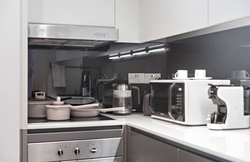 It is fully equipped with stainless-steel cooking appliances that make it suitable for preparing any meal, whether a simple breakfast, quick snack or a three-course gourmet dinner. Spacious quartz countertops and a central kitchen island provide plenty of room to work your MasterChef magic.