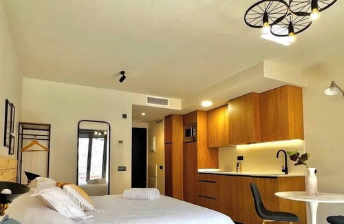 New superior studio in Madrid, located in a building designed and dedicated for you. It has the highest qualities and all the services so that you can enjoy one of the best possible experiences. 180x190cm double bed, 55" smart TV. Full kitchen, large bathrooms, exterior with windows, very bright. It has a balcony and elevator. Parking available to clients in the same building. Ideal for daily, weekly and monthly stays. Metro Line 3: Almendrales (5 Minutes walk) Metro Line 6: Usera (8 Minutes walk)
