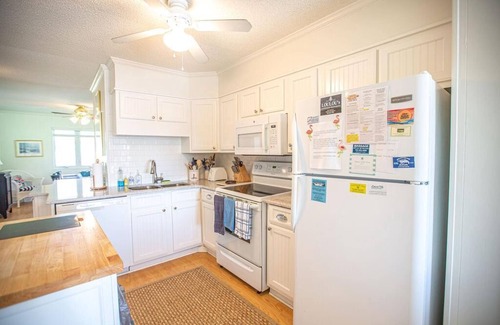 Relax & unwind in this light, bright, upper level condo overlooking the pool and tennis court. Enjoy ocean & ICW views from the balcony with ceiling fan. Take joy in the rocking chairs and outdoor dining. Savor the sunsets from the porch. Captain's Villas amenities include community swimming pool, tennis court, outdoor grills and short walk to your private beach access between 1067 & 1069 OBW. WIFI and books.