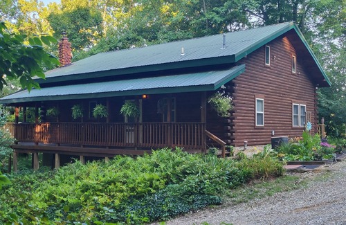 Welcome to a completely secluded, serene cozy log cabin sitting on 60 acres that was built with wood harvested from the property. This locally owned 2860 square foot three level cabin features at least one bedroom on each level. This cozy cabin surrounded by nature has two large bedrooms (King beds), and another bedroom (Queen bed), three full bathrooms, along with an additional futon and a sleeper sofa to accommodate up to 10 guests comfortably.