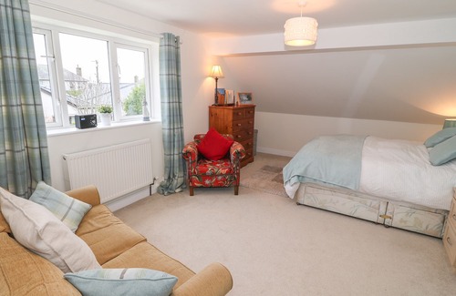 Amenities: Electric central heating with woodburning stove. Electric oven and hob, microwave, coffee machine, fridge/freezer, washing machine, dishwasher, TV with Freeview, DVD, CD/radio, WiFi, selection of books, games and DVDs. Fuel, power and starter pack for stove inc. in rent. Bed linen inc in rent. Travel cot and stairgate on request. Off road parking for 3 cars. Garage for boards, kayaks and bikes. Front gravelled garden with patio and furniture. Two well-behaved dogs welcome. Sorry, no smoking. Shop, pub, restaurant and beach 5 mins walk. Golf course 10 mins walk. Note: Although gardens are enclosed they may not be fully secure or dog proof. Note: There is one external step up to the patio area. Note: The owners keep their kayaks in the garage; guests are politely reminded that this is not for their use.