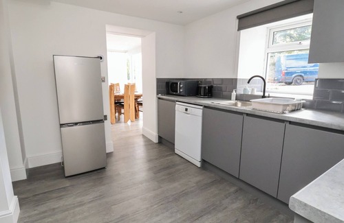 Amenities: Gas heating. Electric oven and hob, microwave, fridge/freezer, washing machine, dishwasher, kettle, toaster. Smart TV, WiFi. Fuel, power, and wood for woodburning stove inc. in rent. Fuel and power inc. in rent. Off-road parking for 6 cars. Front non-enclosed garden with external kitchen/bar area and furniture and rear non-enclosed garden with lawn, patio and furniture. Sorry, no pets and no smoking. Shop 3.6 miles, pub 3.7 miles, beach 4.5 miles. Note: Road noise from A55, please bear this in mind when booking. Note: Low bannisters, please supervise children