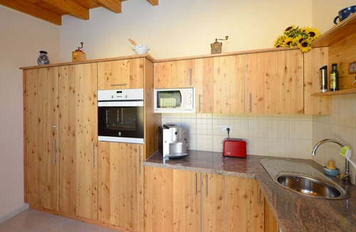 Ausstattung Küche: Ceranfeld, Spülmaschine, Kaffee-Vollautomat, Küchenmaschine, Kühlschrank, Backofen, Mikrowelle, Toaster, elektr. Orangenpresse, hochwertige Töpfe, Pfannen und Küchenmesser. Geschirr und Gläser ausreichend für 6 Personen. Geschirrspülmittel und Geschirrtücher stehen in ausreichender Menge zur Verfügung. Ausstattung Wohnzimmer: Bettcouch mit Federkern-Sitzfläche, Esstisch mit Stühlen, Sideboard, Fernseher mit Satellitenanschluss und Lautsprecheranlage. Für die wenigen Regentage stehen zahlreiche Gesellschaftsspiele und Bücher zur Verfügung. Ausstattung Bad: Großraum-Komfortdusche, Waschbecken mit Spiegelschrank und Seitenschrank, Heizung, Bidet, Fön, Waschmaschine, Wäschekorb. Waschpulver und Toilettenpapier. Ausstattung Schlafzimmer: Boxspringbett 180x200 mit Komfortmatratzen und Gelschaum-Nackenstützkissen für Allergiker geeignet. Bettwäsche, wärmende Decken, großer Kleiderschrank mit Schubladen und ausreichend Kleiderbügeln. Wecker, Stühle. Ausstattung Flur: Schuhschrank, Garderobe mit Spiegel, Gästepantoffeln, Nachtlicht