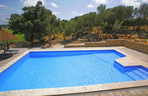 Finca close to Petra with 440 square meters living area and pool in traditional country house style. The comfortably furnished house has 6 bedrooms with bathrooms en-suite and airconditioning h/c in all rooms. It offers splendid views of the village Petra and the surrounding countryside. Nice beaches are at only 15 minutes distance by car.