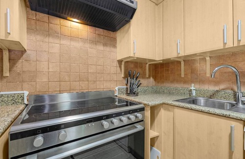 It is fully equipped with stainless-steel cooking appliances that make it suitable for preparing any meal, whether a simple breakfast, quick snack or a three-course gourmet dinner. Spacious quartz countertops and a central kitchen island provide plenty of room to work your MasterChef magic.