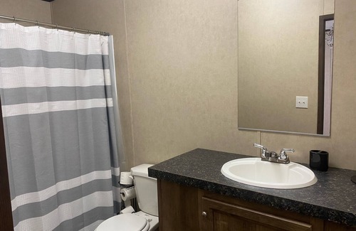 3Bedroom, 2Full Bath mobile home with water access and a boat slip. Master bedroom has a Queen size bed,Room #2 has a twin bunk bed and room# 3 has a bunk bed twin on top and full on the bottom. Home has a spacious 20x20 covered deck for Bar-b-queing and relaxing. There is plenty parking for your boat trailer and there is also a fish cleaning station with running water,electricity,