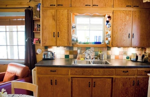 Great for couples, small families, and good friends, it’s a home away from home for fun and comfort in the mountains. It's got free wi-fi, a full kitchen, washer, dryer, fireplace, sauna, claw-foot bathtub, a custom hand-tiled shower inside, and a hot-water shower outside, too. The hillside behind opens out to views of Loggers Point and the San Joaquin Valley below, and the universe above, for delightful evenings of stargazing.