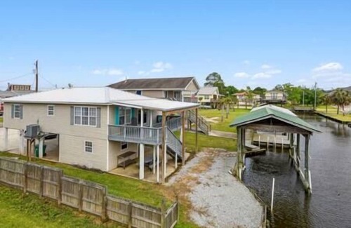 Welcome to "FLEUR DE SEA". This 2-bedroom 2 bath home is centrally located to The Silver Slipper Casino, Buccaneer Park, & Downtown Bay St. Louis. This home is located on one of the Mississippi’s coastal waterways and includes a covered dock for your boat that you can park outside the rental. Relax on the covered back porch and enjoy the cool breeze The home is fully stocked with dishes, cookware, a propane grill, and outdoor seating for grilling and relaxing. This home has 2 queen bedrooms with additional sleeping spaces in the living room. The large sofa converts to a queen sleeper and the love seat converts to a single sleeper. There are also 2 bathrooms and a laundry room.