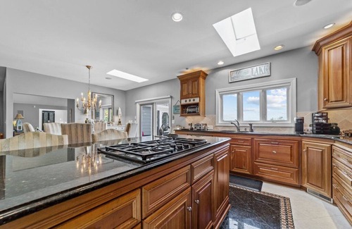 - Large kitchen with dining table that seats 8 and bar seating for 4