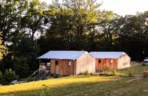 Accommodation: Your comfortable stay in a tent, with natural wood slate and canvas on stilts! A cosy rental with bathroom and toilet inside, the rooms have their wooden partitions. For four, you will appreciate its location in a new area from the campsite to the lake, installed on the terrace facing a superb nature, with bucolic and relaxing charm.Kitchen on 2 electric lights, there is also a refrigerator with a small freezer compartment, a microwave and a Dolce Gusto coffee maker for your morning espresso! And finished the dishes, the tent is equipped with a dishwasher.Both rooms have beds with duvets and pillows and windows that can be opened.
