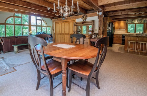 Vaulted ceiling living room with propane stove to create a cozy atmosphere on those chilly evenings or mornings. You're sure to make fantastic memories with a stay at our place - spring, summer or fall. Tremendous views to the Northwest out the large, glassed living room windows over the lake and toward the back side of Killington.
