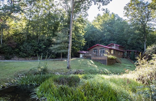 This is a unique property for those who really want to get away from it all and who enjoy an active lifestyle in the great outdoors. Extremely private, this vacation home is nestled on 50+ acres of property that backs up to thousands of acres in the Nantahala Forest. Right on a pond with a private dock to Fontana Lake.
