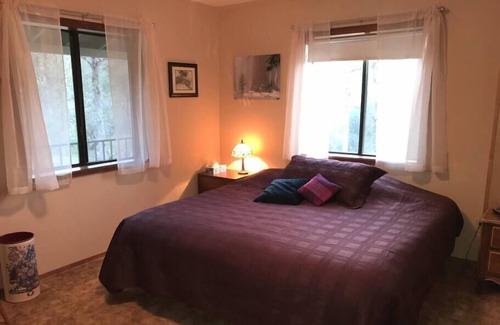 This peaceful 3-bedroom house sits near the center of 43 acres of oak woodland and wildlife habitat in the Sierra Nevada foothills. Located in Midpines, it's hard to get much closer to Yosemite (unless you have reservations inside the park)! Staying here, you'll have the chance to explore the rural foothills during your visit, and deer and jack rabbits routinely visit the house. Start your day with coffee on the porch, or enjoy a home-cooked meal from the kitchen.