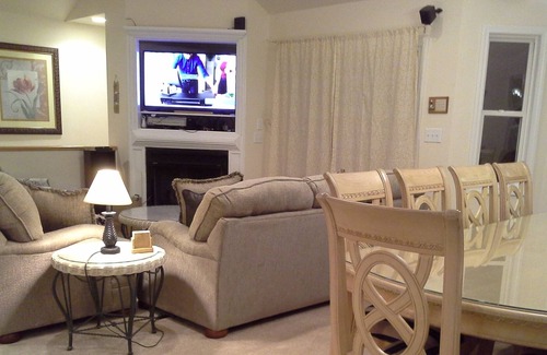 There are three bedrooms on the second level, one of which is a king with private bath, smartv and private entrance to the 2nd floor deck with hot tub. The third level boasts another king bedroom with private bath, another half bath and a living room that invites you to sit and stay awhile. Wireless high speed internet is provided throughout the house. The delightfully arranged kitchen has everything you will need to create an intimate meal for two, or a family meal for twelve!