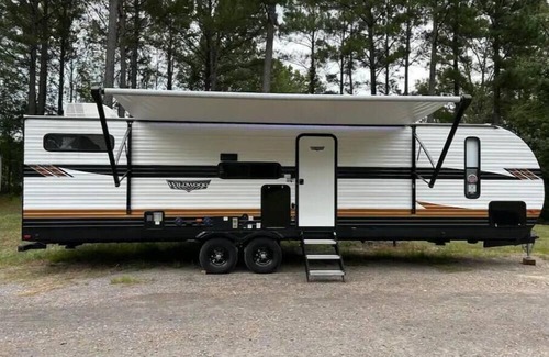 Come glamping in this full set up Forrest River Wildwood! Whether you’re looking for a weekend by the lake, a test run before you buy a camper, or just a new experience- you’ll love your stay here. Enjoy the outdoors, kick back and watch tv, listen to music on the Bluetooth speaker, or use the mini outdoor kitchen under the awning! Most essentials are provided so pack lightly and make yourself at home (on wheels). We haul to Timberlake and Goshen springs, but feel free to request a different location! Full 2 bedroom, 1 bath camper that sleeps up to 7 with bunks and couch bed. You will have a full kitchen with dishes, utensils, a Keurig, and most cooking supplies provided. Clean towels and toilet paper will be provided for the bathroom as well as bedding, blankets, and pillows. Enjoy the outdoor mini fridge and griddle under the awning with provided ball park chairs. AC and heating works great. We also provide ruku on the tv so you can watch most streaming services. You will enjoy this well kept, spacious, 2023 Forrest river wildwood camper! (IMPORTANT) This booking is charging for the camper only. After contacting us and requesting a day, you will need to call the campground and book your spot for the same days. (Average $30 a night) We will then bring the camper to your spot # on that day and pick up the camper after your stay. We can help make this process as easy as possible and walk you through it! This booking is listed for Timberlake, but we haul to sunset, wendy oaks, shady pines, and take other requests!