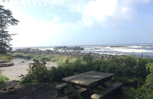 Ground floor of house with your own separate entrance and parking spot. Includes small kitchen, separate bath, pull out queen day bed & adjoining bedroom with queen bed. BBQ, cedar sun deck, your own private Hot Tub & Wood Sauna & outdoor shower. Minutes walk from the Wild Pacific Trail and stunning beaches! 30 min drive from Tofino. Dog friendly for up to two small dogs or 1 medium size dog but pls request before booking ($25/visit). Hike, surf and swim the trails and beaches, golf and come back to a hot tub and sauna! See: youtube.com/@forestsweetretreat