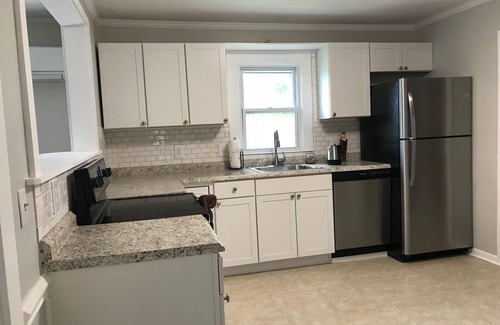 This 4 bedroom 2 bath nice all new kitchen, living Room, dining room and den 4 queen size bed and 2 singl size memory foam mattresses and 1 futon sofa / bed.