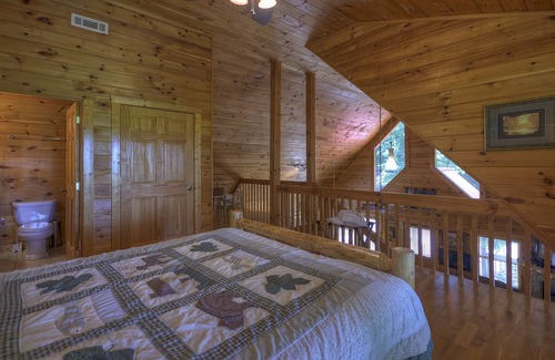 Beautifully decorated 2 bedroom cabin rental has two main bedrooms and one spacious loft with private balcony. Each sleeping area has its own bath. A newly remodeled fire pit is the perfect place to unwind after a long day of rafting, hiking, or biking.