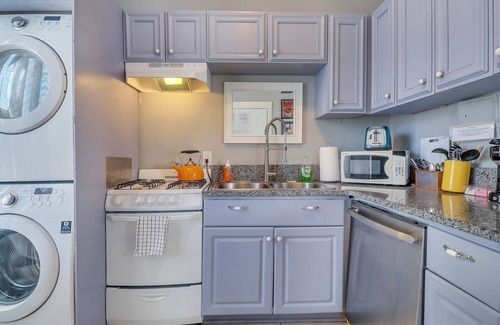 There are some free parking spaces available in front of the property and along the side streets. Paid street parking is also available.