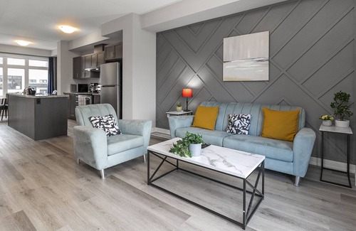 Bright, glittering, corner townhouse unit comes complete with high end finishes and equipped with all the necessities. The clean, modern feel makes this the perfect place to relax, work and explore. Relax with multiple in-house streaming services and find the perfect movie for movie night or explore the city's family friendly activities and trendy nightlife. Close to the highway, and with Walmart a short walk away, your home away from home awaits you!