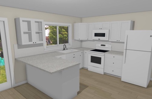 Cute freshly renovated home with amazing views of Puget Sound and Port Townsend Bay. Includes 2 bedroom plus office. We are looking for someone to rent April and May of this year as the house is booked late May through the Summer. Minimum rental is 30 days due to Port Townsend requirements. Kitchen is in the process of being renovated and will be ready by April 1st. Photo shows architectural rendering of updated kitchen.
