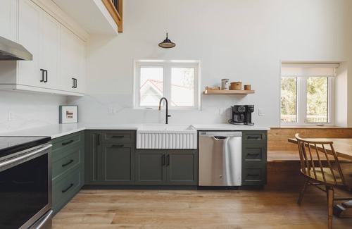 From the moment you step inside, soaring vaulted ceilings and expansive windows bring the outdoors in, flooding the home with light and framing panoramic water views. The open-concept layout makes gathering effortless. The living room features ample seating, a fireplace for cooler nights, and space to unwind as a family or group of friends. The chef-inspired kitchen is fully equipped with stainless steel appliances, generous counter space, and all the essentials you’ll need to prepare anything from a casual lakeside lunch to a celebratory feast. Bedrooms are designed for comfort with plush beds, calming décor, and large windows that let you fall asleep and wake up with nature all around. Bathrooms are sleek and spa-like, offering modern fixtures and thoughtful details.