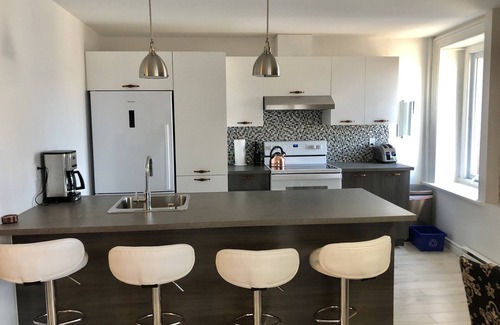 You have a private entrance with a large staircase that will take you to the apartment where you will find: kitchen with lounge area, dining area, 2 bedrooms, bathroom and a balcony with a view of the Château Frontenac.