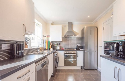This semi-detached house sits in a relatively quiet no through road with a private fully enclosed rear garden furnished with a dining table, chairs, benches, a parasol, and a BBQ so you can enjoy eating outside in the warmer months. You have a private parking space for one car and others can park on the road in front of the house.