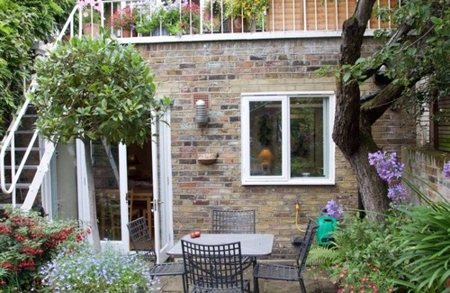 Apartment Britanna is a charming and immaculate two bedroom short term let in a quiet residential road in Fulham. This short stay flat is thoughtfully decorated and has the additional bonus of a pretty patio garden accessed from the reception room. A fully equipped kitchen is integral to the reception area making this an ideal space in which to relax. The apartment can accommodate three guests.The living area and kitchen are all open making this apartment convenient for family or friends. There is a dining room table just next to the kitchen and off of the kitchen guests will have access to a very relaxing garden area where there is a table and chairs. Apartment Brittania has two bedrooms. One bedroom has a double bed and the second one has a twin bed. There is one full bathroom in the apartment with shower.Brittania Road runs directly off New Kings road to the south and Fulham Road to the north. A very convenient location to explore or to pick up links to other parts of London. Fulham Broadway is the nearest underground station and is located within a shopping mall. Watch out for Chelsea Football Club Match Days when the neighbourhood becomes a sea of blue! Win or lose up the Blues. North End Road has a colourful and thriving street market.There is a WholeFoods supermarket at Fulham Broadway and a Sainsburys inside the shopping mall next to the station.