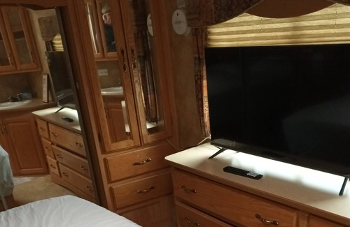 Sitting on a PRIVATE 25 acre horse farm. Our cost effective RV offers a move-in ready suite that has a fully equipped kitchen, WIFI, independent AC/Furnace controls, 2 TV's with Firestick. If you prefer privacy this RV is for you.