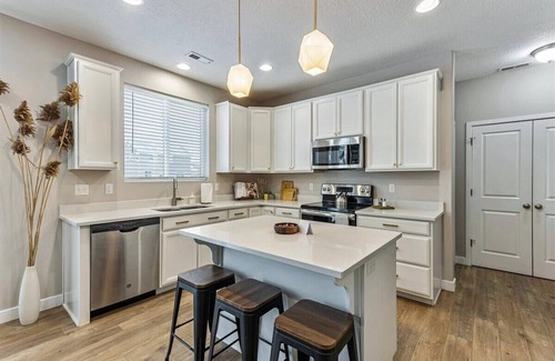 Escape to our cozy home with your furry friends! Our fully fenced grass backyard is perfect for your pets to run around and play while you enjoy the outdoor amenities like fire pits and yard games. You can stargaze at night and enjoy the peace and quiet of our pet-friendly home. Book now and enjoy a relaxing vacation with your pets.