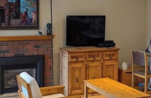 Some of the other features of this bright and modern suite are a TV, DVD player, microwave, coffee maker, full kitchen, complete tableware for 3, gas fireplace, dishwasher, full-size electric range/oven, linens and towels, double-sized bed in a spacious bedroom, and folding-bed in the living room.