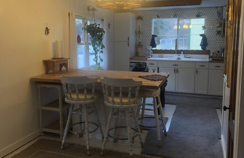 Fully remodeled 1940’s farmhouse in beautiful country setting. Light, bright and cozy two level farmhouse with two private bedrooms (one upstairs with a full bed and one downstairs with a queen) and a large loft for extra visitors should you want to use the extra inflatable queen mattress or bring one (or two!) of your own.