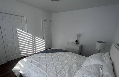 Fully renovated appartemant with great view and big windows, in front of a beautiful park, balcony in front and in the back, 2 free parking spots, everything is brand new. Close to public transport and all services, walking distance to metro Du College, Ville Saint Laurent. 12 minutes drive to international Montreal airport, 20 minutes drive to downtown Montréal. Unlimited internet.